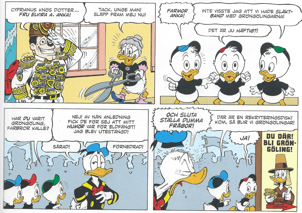 Den här veckan blir det bildtema som utgår från Kalle Anka & Co, närmare bestämt sådana serier som är tecknade av Don Rosa. Hans specialitet var att väva ihop historierna med verkliga händelser/personer samt med mytologi och andra sagor. Varje dag så utgår jag från en seriestrip som sedan låtvalet ska kopplas till.